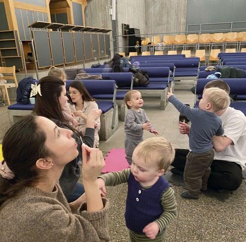 Børnebongo er en musikalsk legeplads, hvor vi udforsker kirkens rum gennem sang, musik og bevægelse. Vi skaber plads til stille fordybelse og store armbevægelser.
