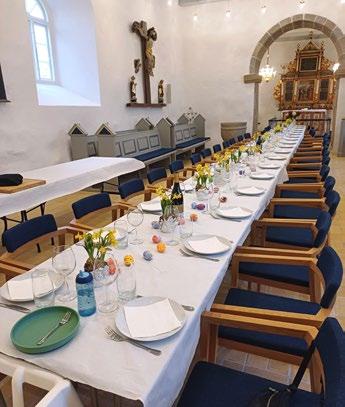 Af praktiske grunde er måltidet i kirken ’skrumpet ind’ til en tør oblat og nogle dråber portvin. Men denne aften byder vi ind til en særlig gudstjeneste og middag – i kirken.