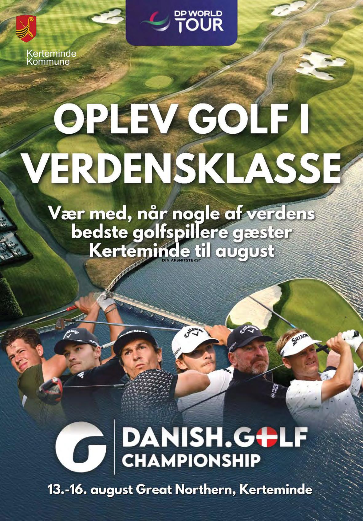 En af de helt særlige oplevelser i sommeren 2026 er, når en afdeling af den internationale golfturnering DP World Tour spilles på Great Northerns bane i Kerteminde fra den 13.-16. august. Turneringen er det største event i kommunens historie, hvor vi forventer mellem 60-80.000 tilskuere over fire dage.