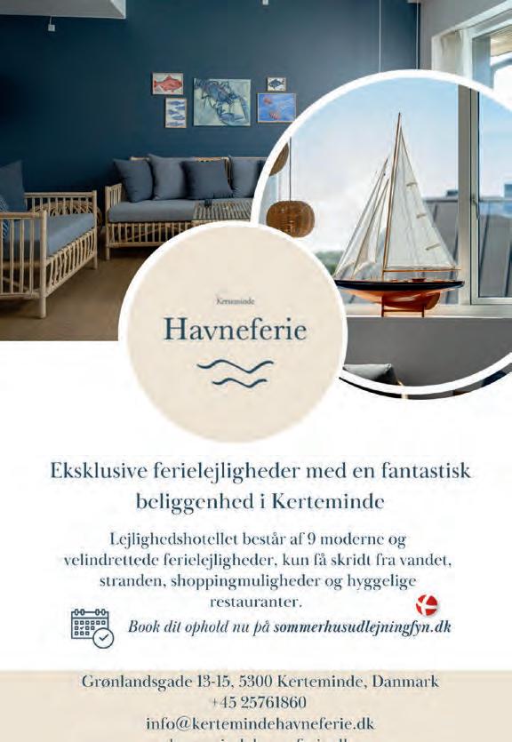 culture, nature and charming villages, and also offers an authentic market town atmosphere in Kerteminde’s narrow streets, alleys and slipways, where you will find a wide range of specialist