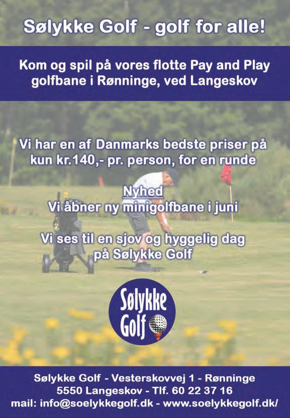 If you drive towards Langeskov in the southern part of the municipality, you will find Sølykke Golf. Here you will find a 9-hole course with a total length of just over four kilometres – a round takes about an hour and a half and is therefore ideal as an active break during your holiday.