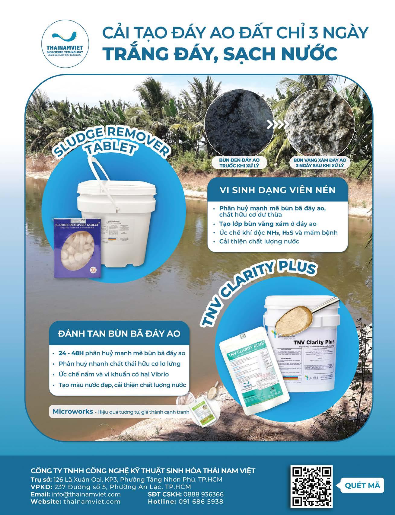 Cải thiện ôxy đáy ao: Tăng cường quạt nước, sục khí để cung cấp đủ ôxy cho quá trình phân hủy hữu cơ và hoạt động của vi sinh vật. Kiểm tra hàm lượng DO (hàm lượng ôxy hòa tan), đảm bảo ≥ 5 mg/L, đặc biệt vào sáng sớm.