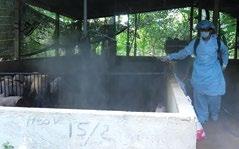 Tiến hành phun tiêu độc, khử trùng chuồng nuôi và khu vực chăn nuôi bằng thuốc sát trùng; rắc vôi bột hoặc phun các loại thuốc sát trùng toàn bộ lối đi, hành lang, cổng, đường đi và phương tiện.
