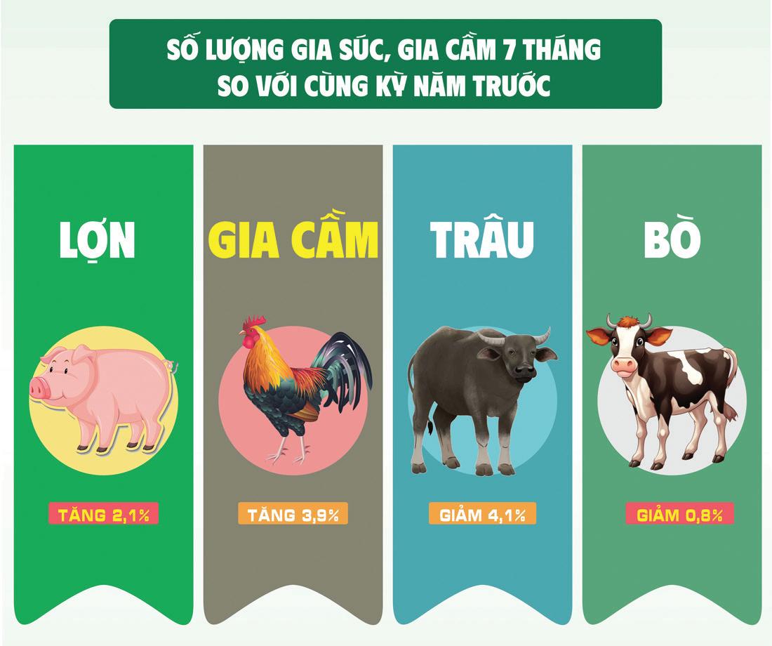 ▶ Tính đến hết tháng 7, tổng đàn vật nuôi trong toàn tỉnh Phú Thọ có gần 1,85 triệu con heo, gần 37,7 triệu con gia cầm, gần 252.000 con bò, khoảng 165.000 con trâu. Tổng sản lượng thịt hơi các loại 7 tháng năm 2025 đạt trên 283.000 tấn. Toàn