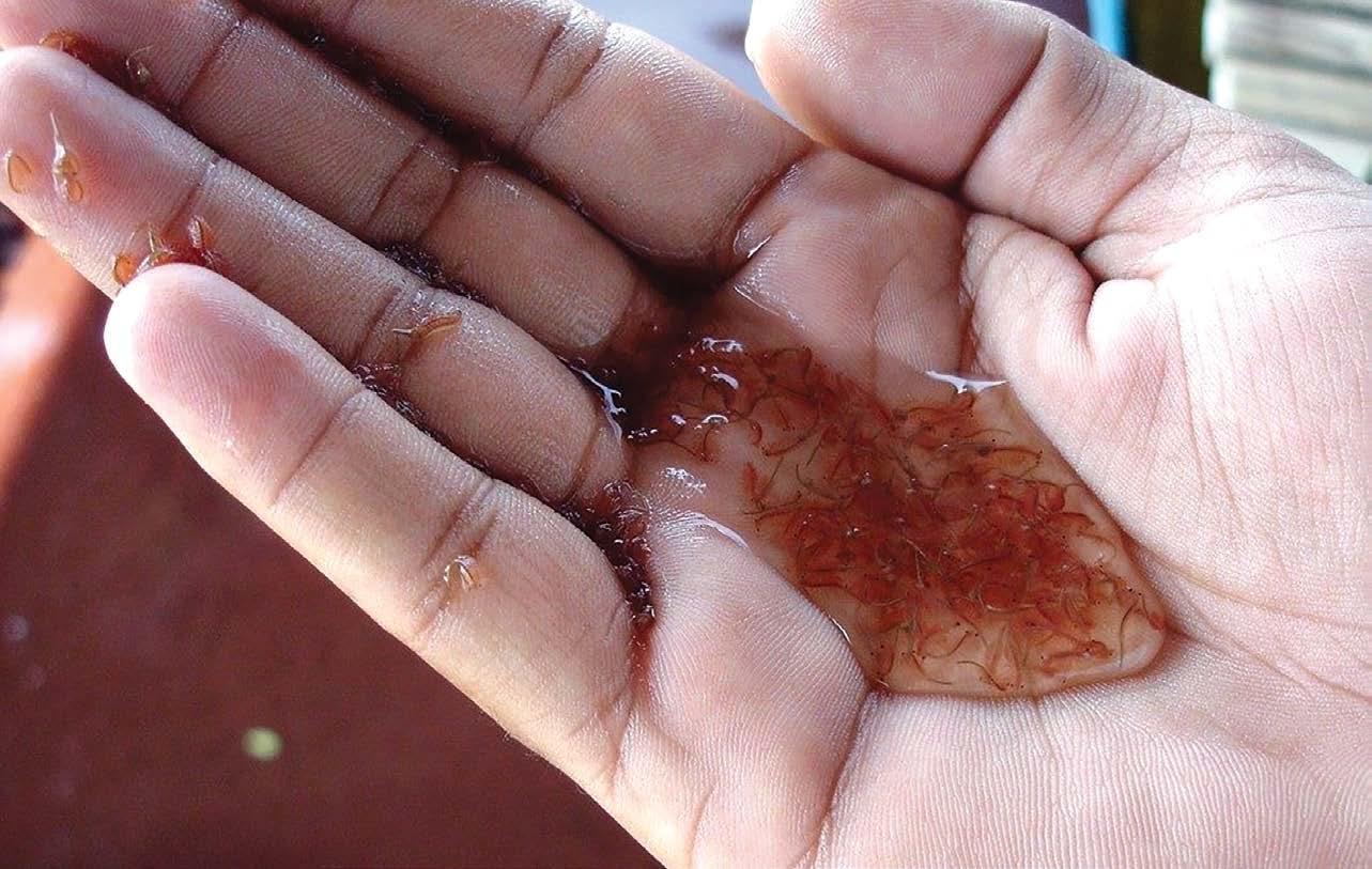 - Dịch tiết của cơ thể (bao gồm cả máu) có màu trắng đục như sữa, số lượng tế bào máu giảm nhiều so với tôm bình thường, máu khó đông.