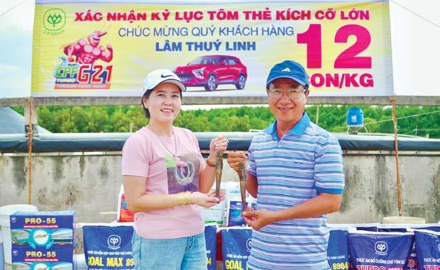 Bước 3: Cho tôm ăn thức ăn bổ sung chế phẩm và hoạt chất sinh học (tiến hành ngay sau khi kết thúc bước 2). Cụ thể, người nuôi trộn thức ăn (thức ăn đã được xử lý như bước 2) với chế phẩm sinh học (có thành phần Bacillus spp, Lactobacillus spp, hàm lượng 10 3 cfu/g), hoạt chất sinh học (MOS) và chất kết dính (Binder) theo tỷ lệ: 5 g chế phẩm sinh học + 5 g hoạt chất sinh học + 5 g chất kết dính/1 kg thức ăn. Sau đó, cho tôm ăn thức ăn đã được trộn chế phẩm và hoạt chất sinh học liên tục trong vòng 7 - 10 ngày, mỗi ngày 1 lần vào lúc 17 - 18 giờ.