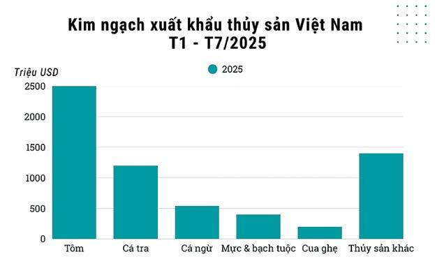 Theo số liệu từ Bộ Nông nghiệp và Môi trường, kim ngạch xuất khẩu thủy sản 8 tháng đầu năm 2025 đạt 7,03 tỷ USD, tăng 11% so với cùng kỳ năm trước. Đây được coi là kết quả tích cực của ngành thủy sản khi phải