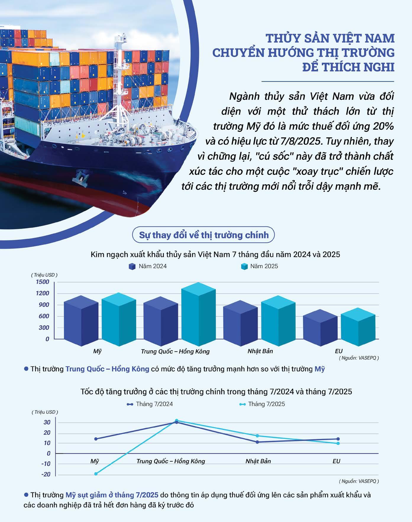 Đứng trước muôn vàn khó khăn từ “cơn bão thuế đối ứng” ngành thủy sản đã nhanh chóng thích ứng linh hoạt, chủ động chuyển hướng xuất khẩu, đẩy mạnh tiêu thụ tại những thị trường tiềm năng, tận dụng FTA