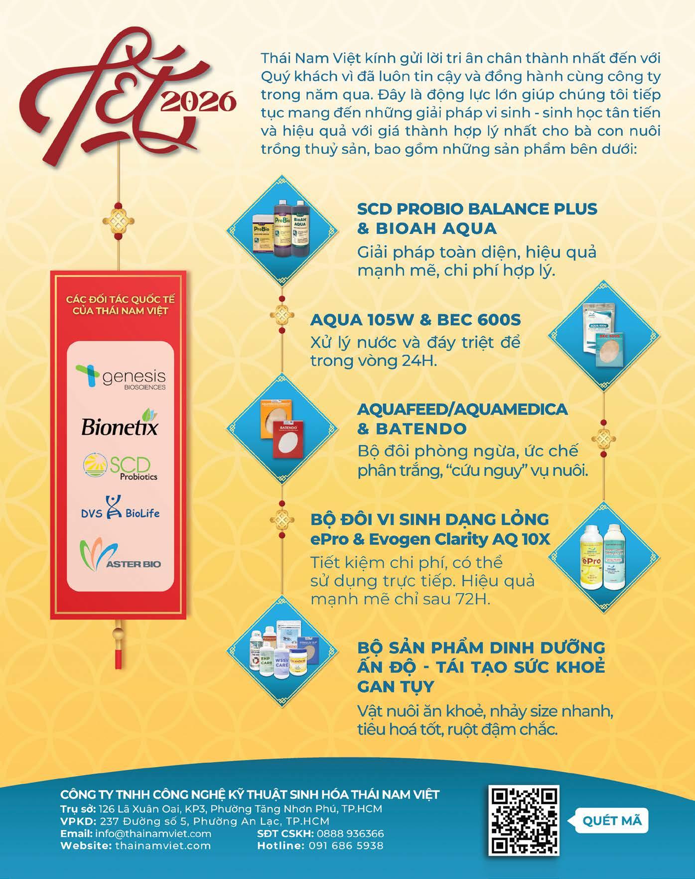 Trong bầu không khí hân hoan này, Tạp chí Thủy sản Việt Nam xin gửi lời tri ân sâu sắc tới quý bạn đọc đã luôn tin tưởng và đồng hành cùng Tạp chí. Chúc quý vị một năm mới an khang, thịnh vượng, vạn sự như ý!
