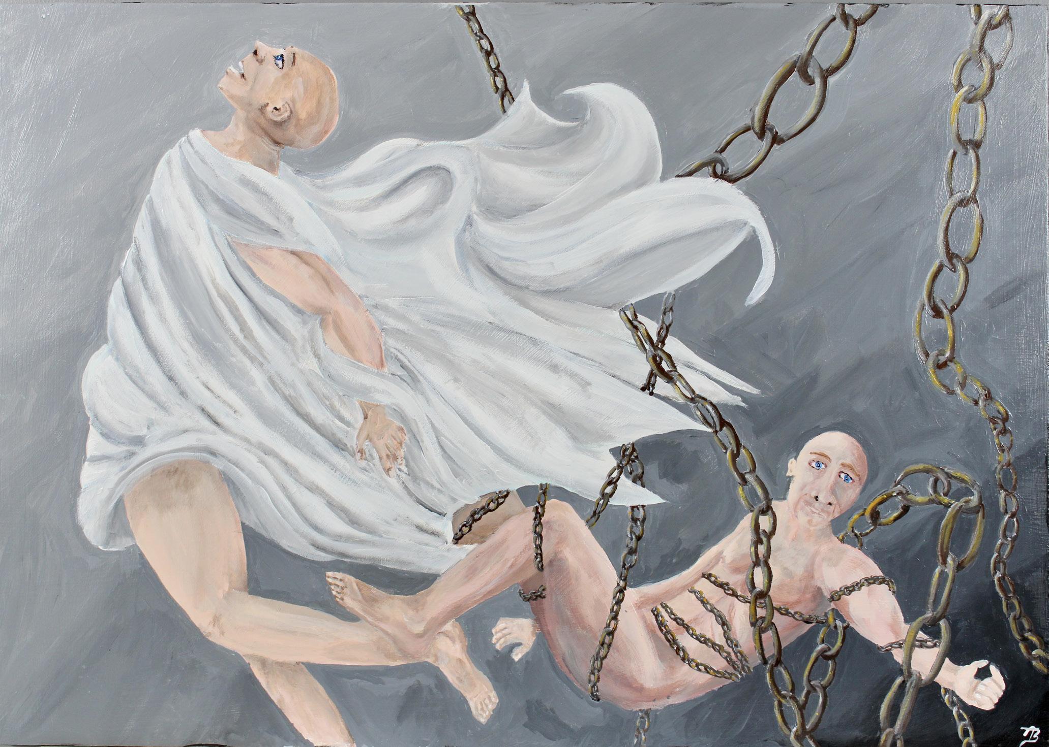 La Llorona - Wetp Womanour Individual Cage? acrylic on board, 120 x 100 cm