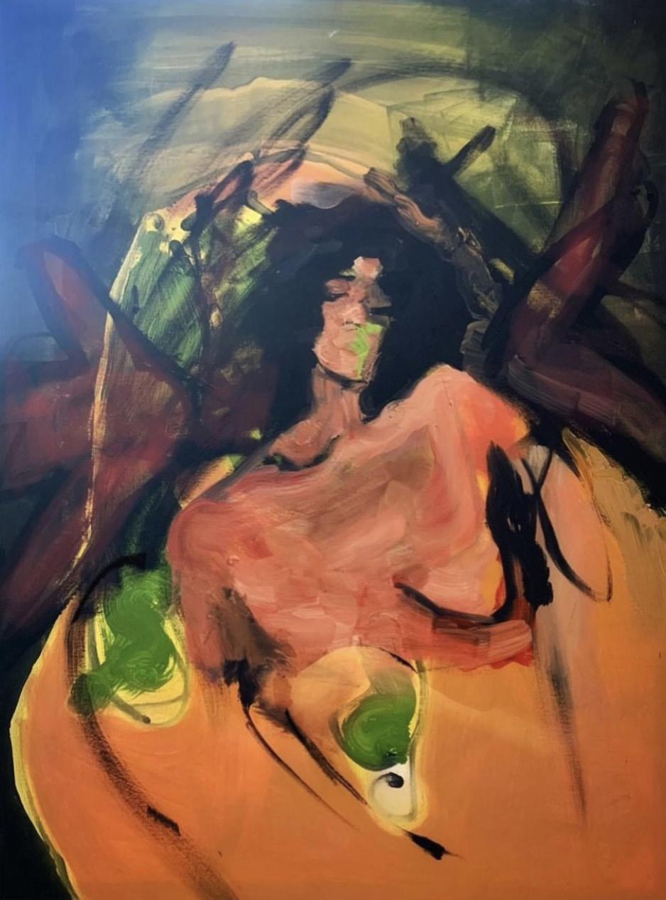 “I am an American born figurative artist based in the South of England. My work revolves around the figure directly observed. I consider gesture to be what empowers my single figure pieces. Relating to the model as a human being with feelings and life and not as object to draw or paint is integral to my figurative work. I enjoy creating an abstraction using the figure as a point of departure. I mainly use oils and soft pastel.”