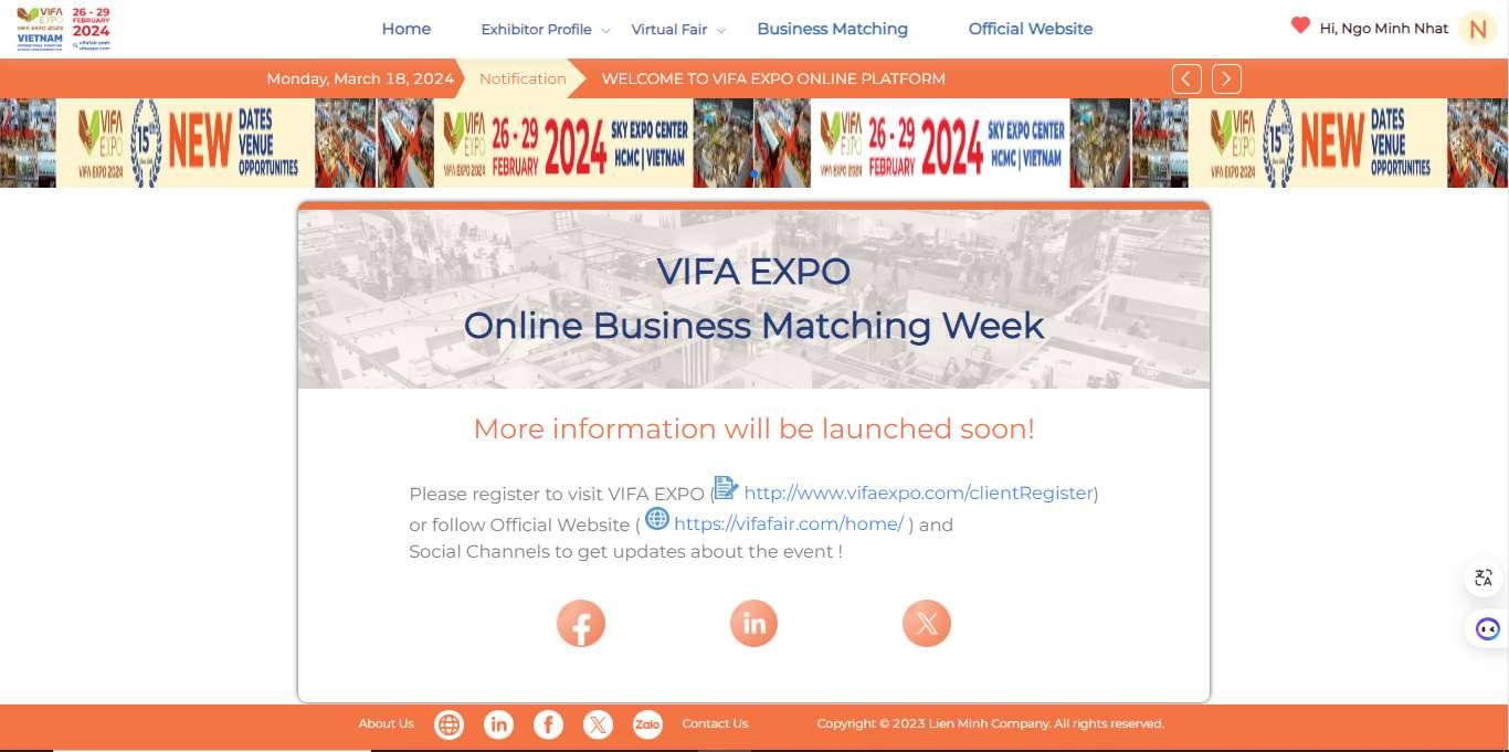 VIFA EXPO ONLINE PLATFORM 04 VIFA EXPO Online Business Matching Week (Coming soon in April, 2024)