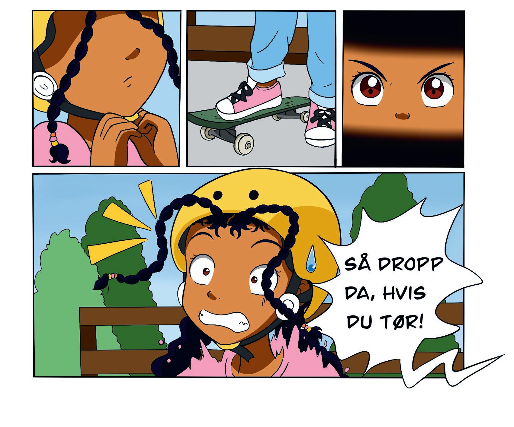 Jeg lukker øynene og tar et dypt åndedrag. Slipper pusten forsiktig ut gjennom nesa. Dette klarer jeg. Det er bare en liten skaterampe. Jeg skal vise dem alle hva jeg er god for!
