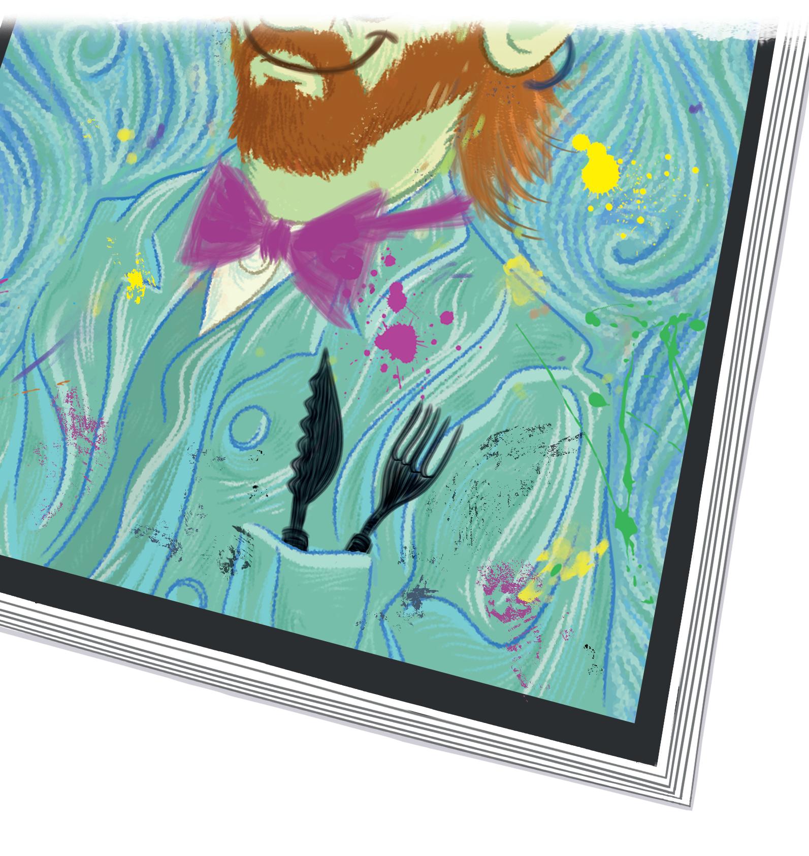 Og da ser vi det. Pappa gjorde mer enn bare å ommøblere fjeset til van Gogh mens jeg ble sendt ut med frokostpenger. Så har han ikke sagt noe, den luringen. Mamma blir målløs. Det er som om hjernen hennes har reist på ferie.