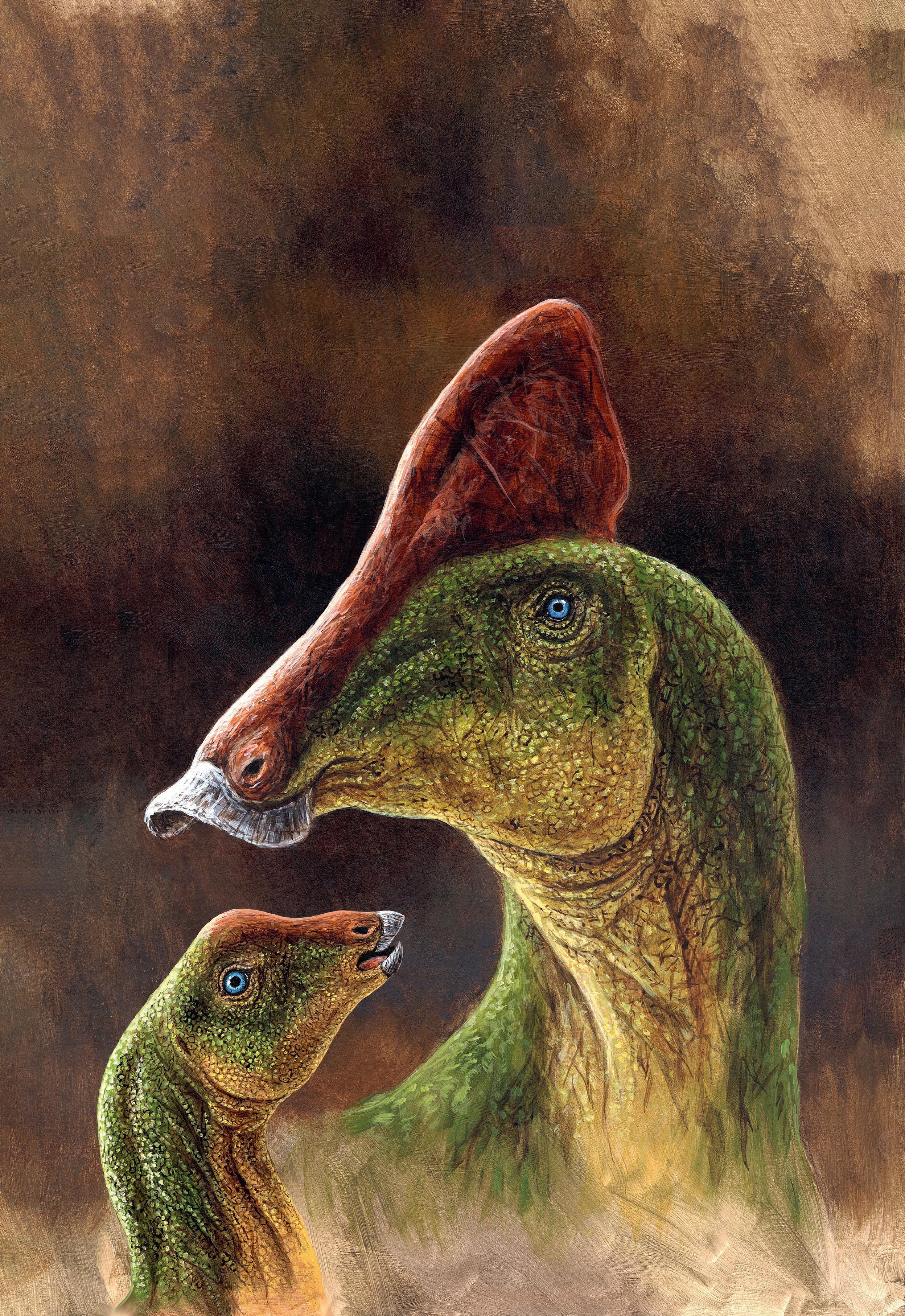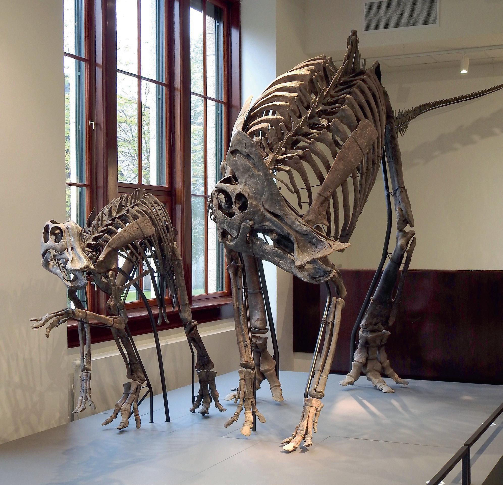 å Naturhistorisk museum i Oslo står skjelettene til to andenebbdinosaurer. En voksen og et barn. De to dinosaurene har fått navnene Zelda og Zara.