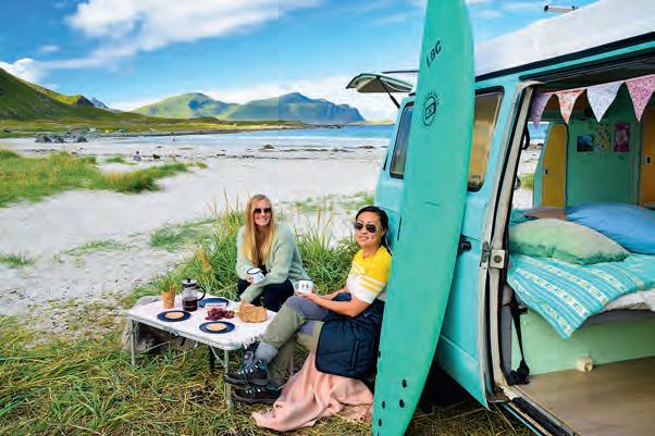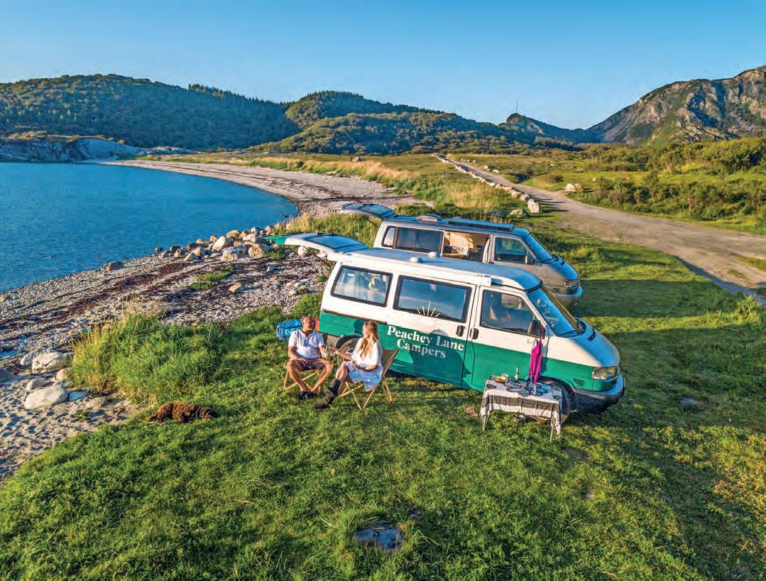 HUS PÅ HJUL. Hele Nord-Norge er svært godt egnet til å utforskes med bobil og campervan. Da er det ekstra fint å nyte lange og lyse kvelder – som her fra Breivikstranda på Dønna.