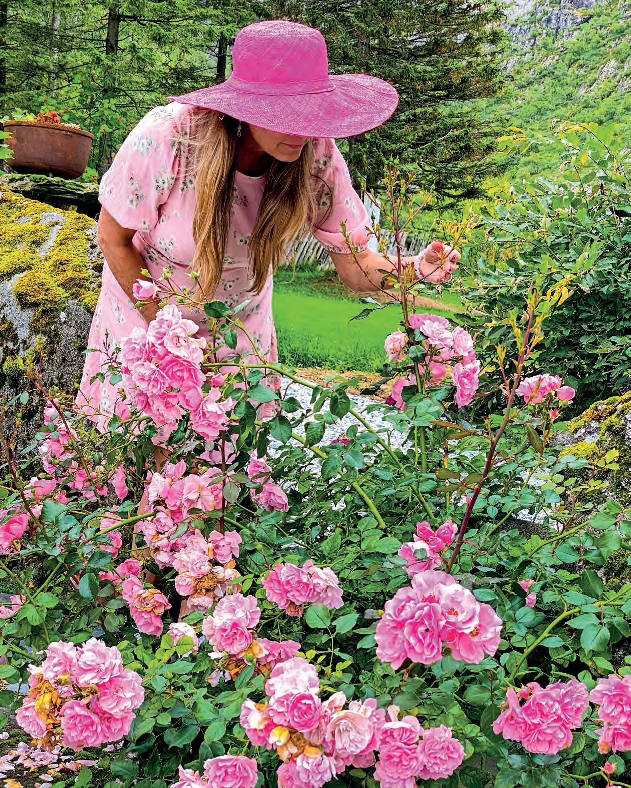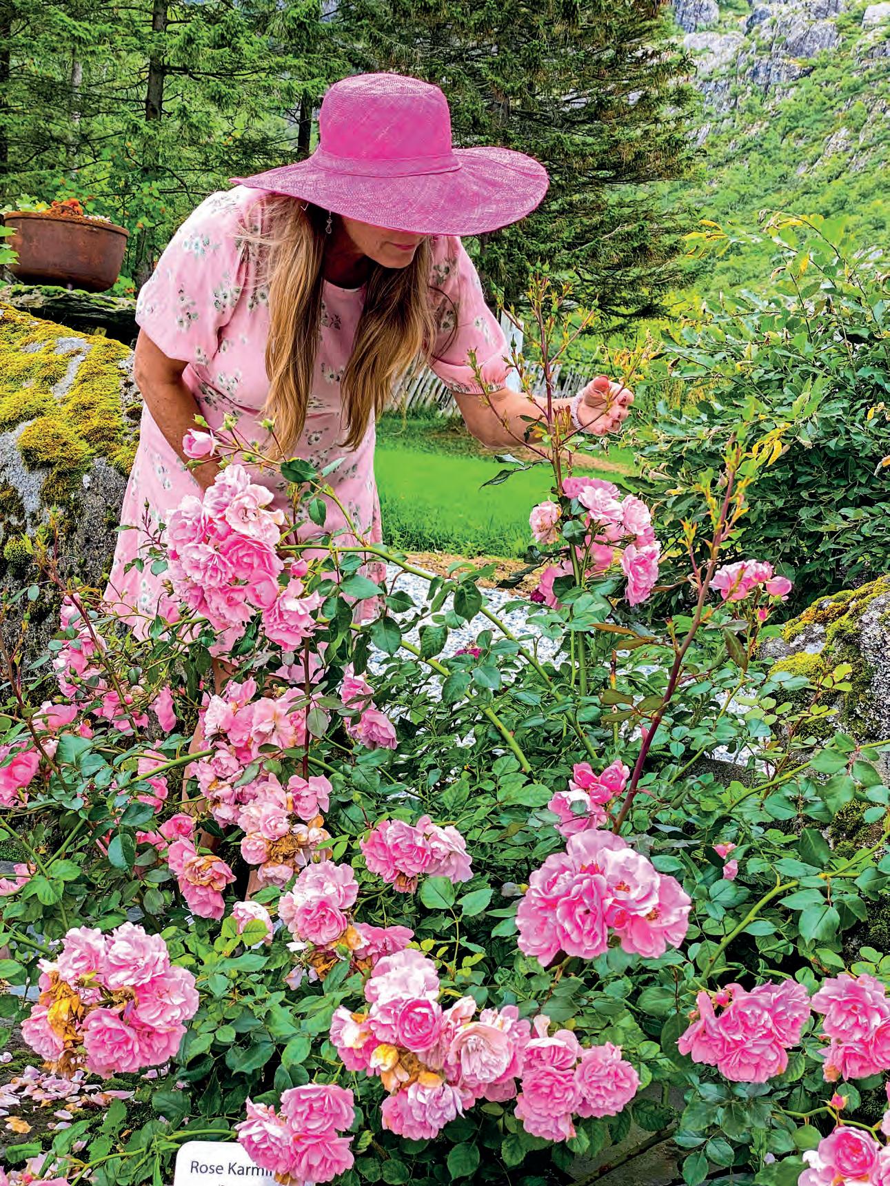 brukes på hester med kolikk, og løpstikke som hjelper kyrne i brunst. Innerst på det trivelige området ligger Bibelhagen, med varmekjære planter som fiken, laurbærtre og granateple. Hagen er formet som et alter, omkranset av rosebusker og epletrær, og er en populær arena for vielser om sommeren. Den vel beplantede hagen er full av både vakre blomster og sesongens grønne urter, og mange av dem finner veien inn til kjøkkenet på restaurant Sagastua og Hildurs kafé. Men giftige belladonna, hun blir i hagen. ●