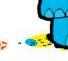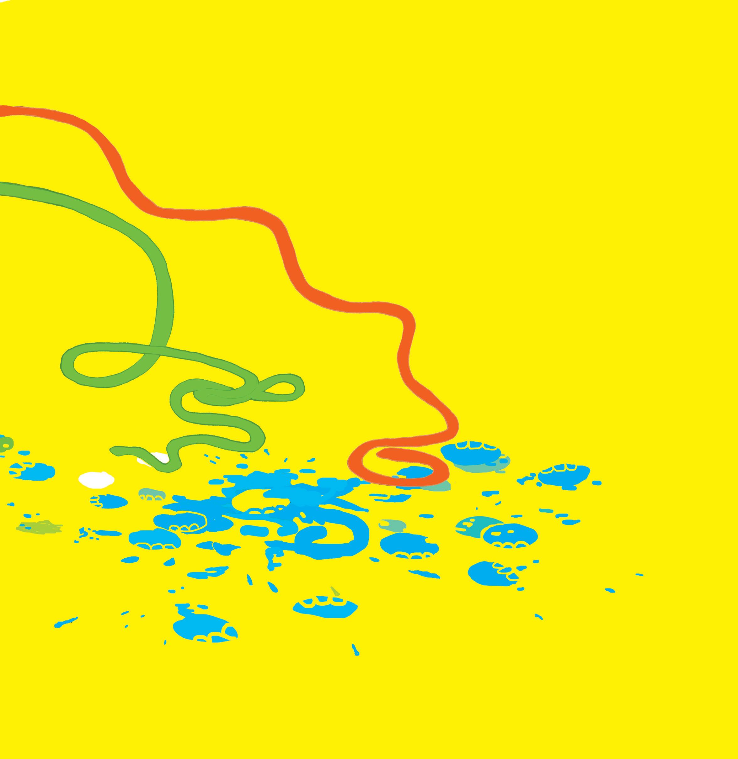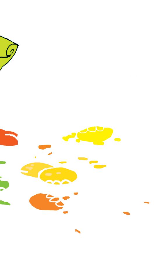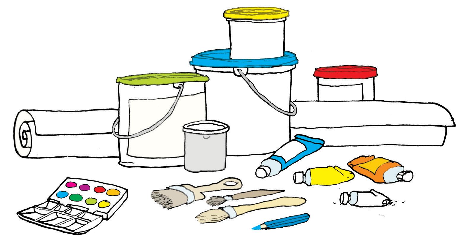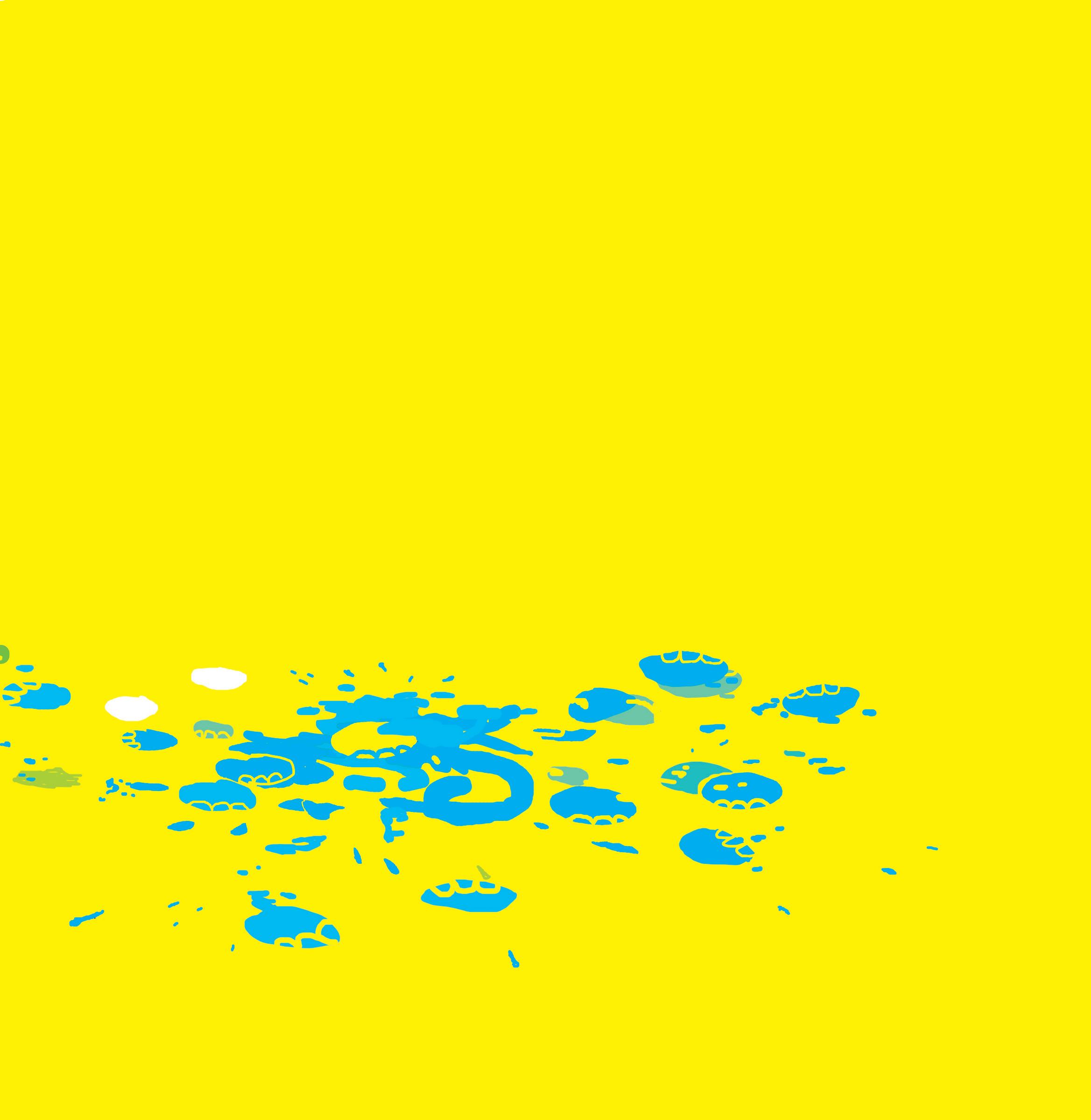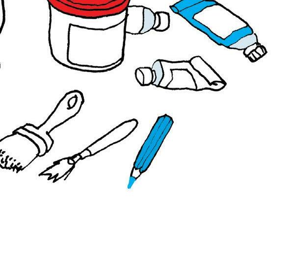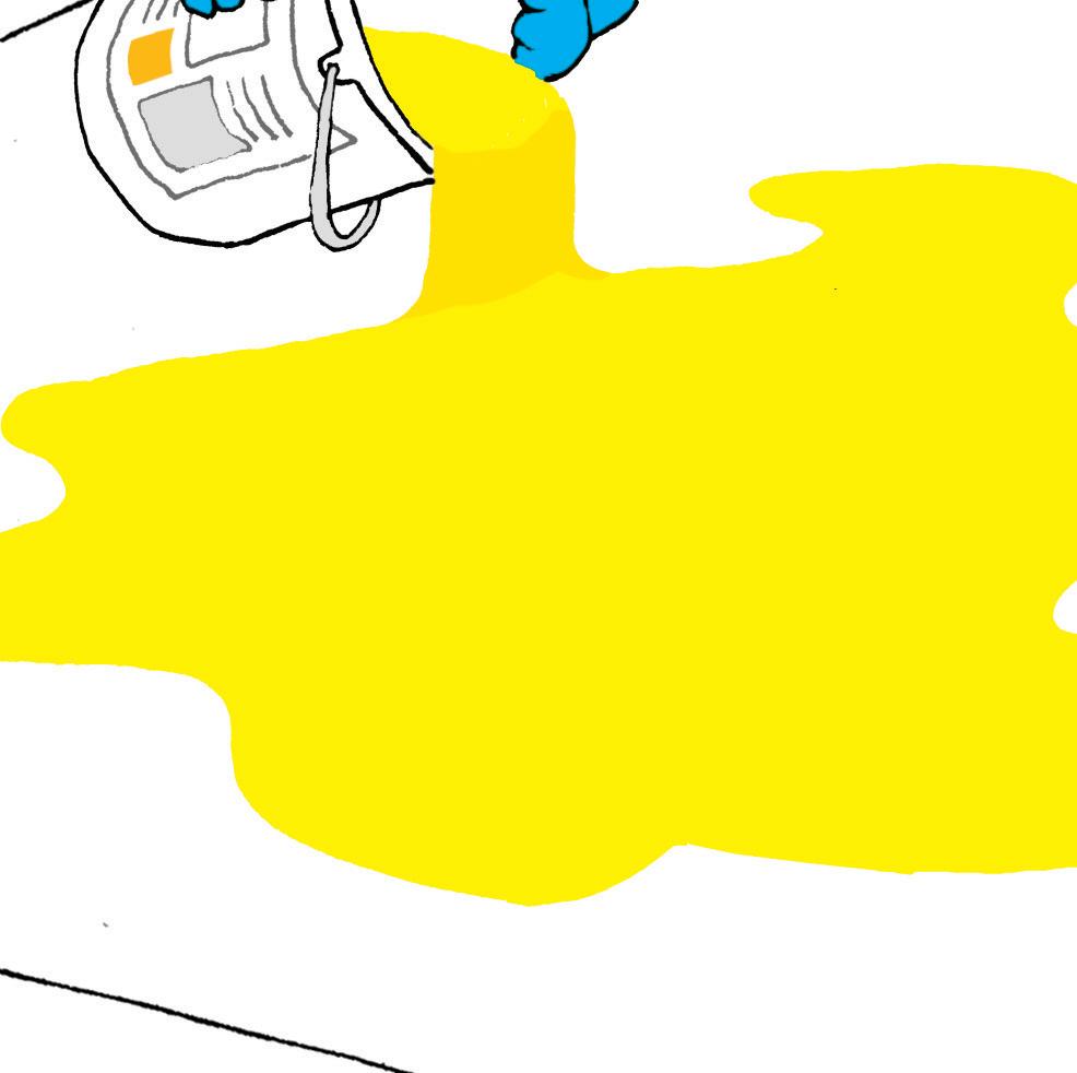 Så tar han en tube blå maling og klemmer den ut midt i alt det gule ...