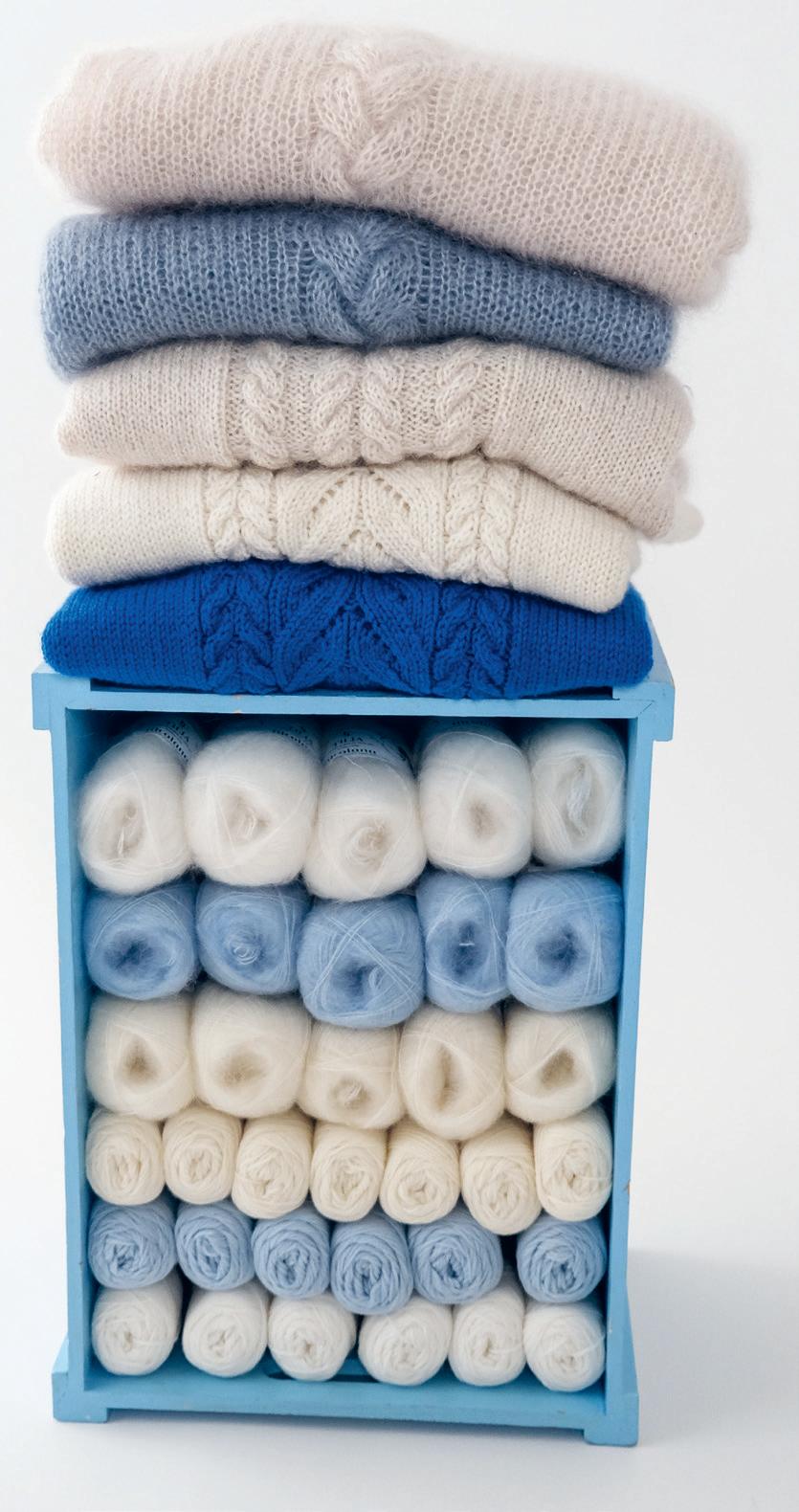 8). Så lenge du strikker en prøvelapp og er sikker på at strikkefastheten passer med det som er oppgitt i oppskriften, har du uendelig mange garntyper å velge i. Det er likevel én ting du bør tenke på når du velger garn til struktur- og flettestrikk: Jo glattere garnet er, desto tydeligere blir strukturen. Et godt eksempel her er kornblomstmønsteret som du finner i boken. Dersom du strikker dette i et glatt merinoullgarn, vil strukturen komme tydelig frem i plagget. Dersom du strikker dette i et pusete garn, for eksempel dobbel silk mohair, vil strukturen forsvinne mer inn i plagget. Det samme gjelder flettestrikk: Jo glattere garnet er, desto bedre kommer fletten frem. Begge deler kan selvfølgelig være fint, men det er bra å være klar over forskjellen det vil utgjøre i plagget du strikker.