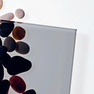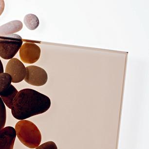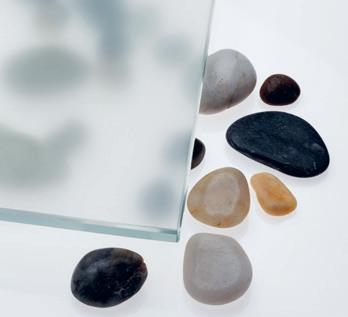 Etsatun satiinilasin silkinhimmeä pinta hajottaa valoa kauniisti ja pehmentää lasin takaa näkyviä ääriviivoja. Etsattu satiinilasi on saatavilla mittatilaustuotteisiin.