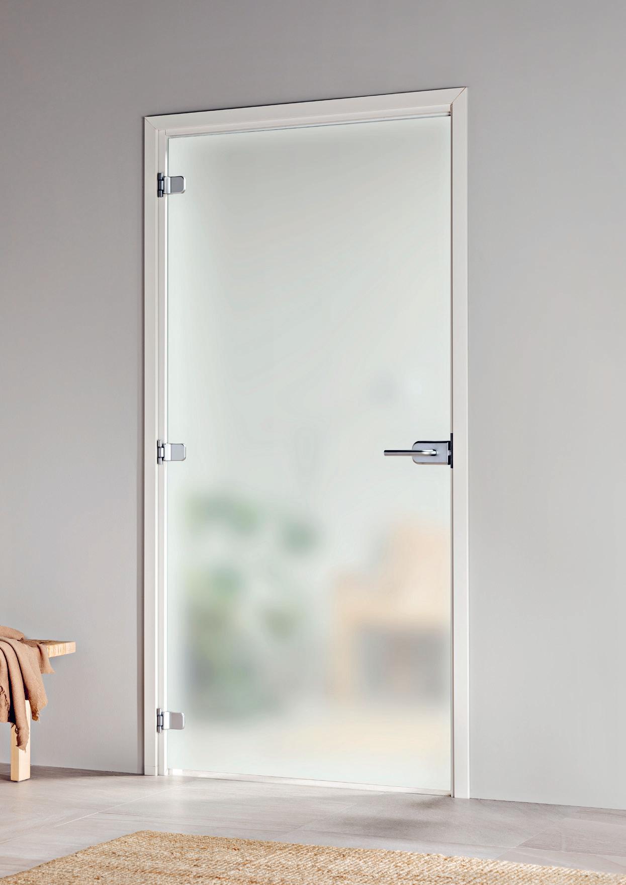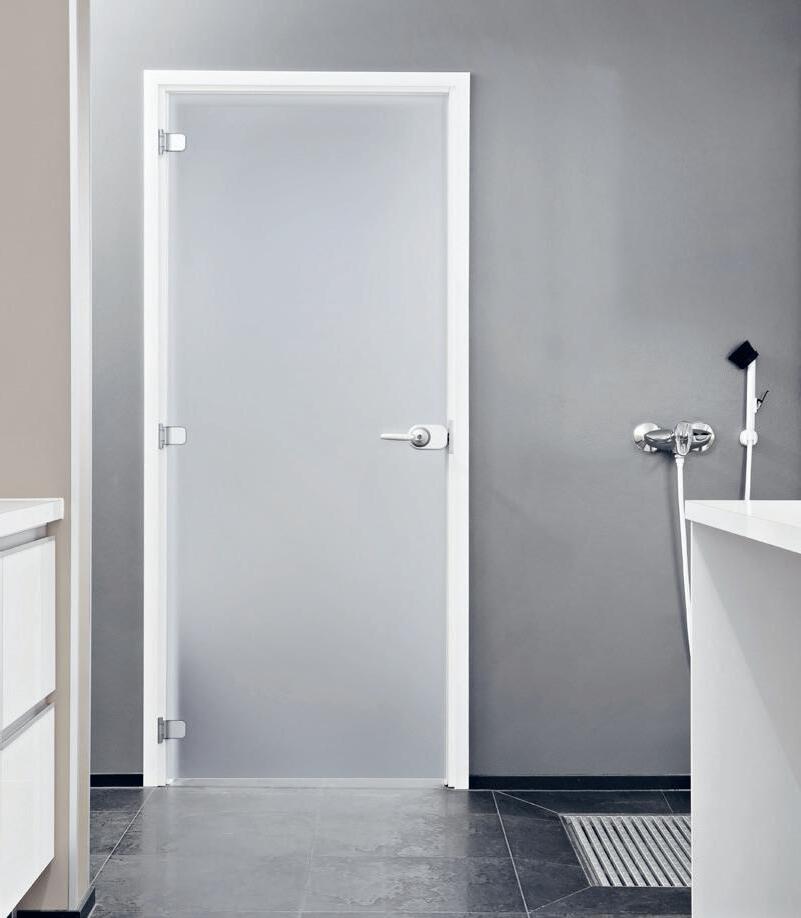 AAVA soveltuu 800 mm tai 900 mm leveään ja 2100 mm korkeaan (8x21 tai 9x21) oviaukkoon. Lasi on 8 mm karkaistua reunahiottua satiinilasia.