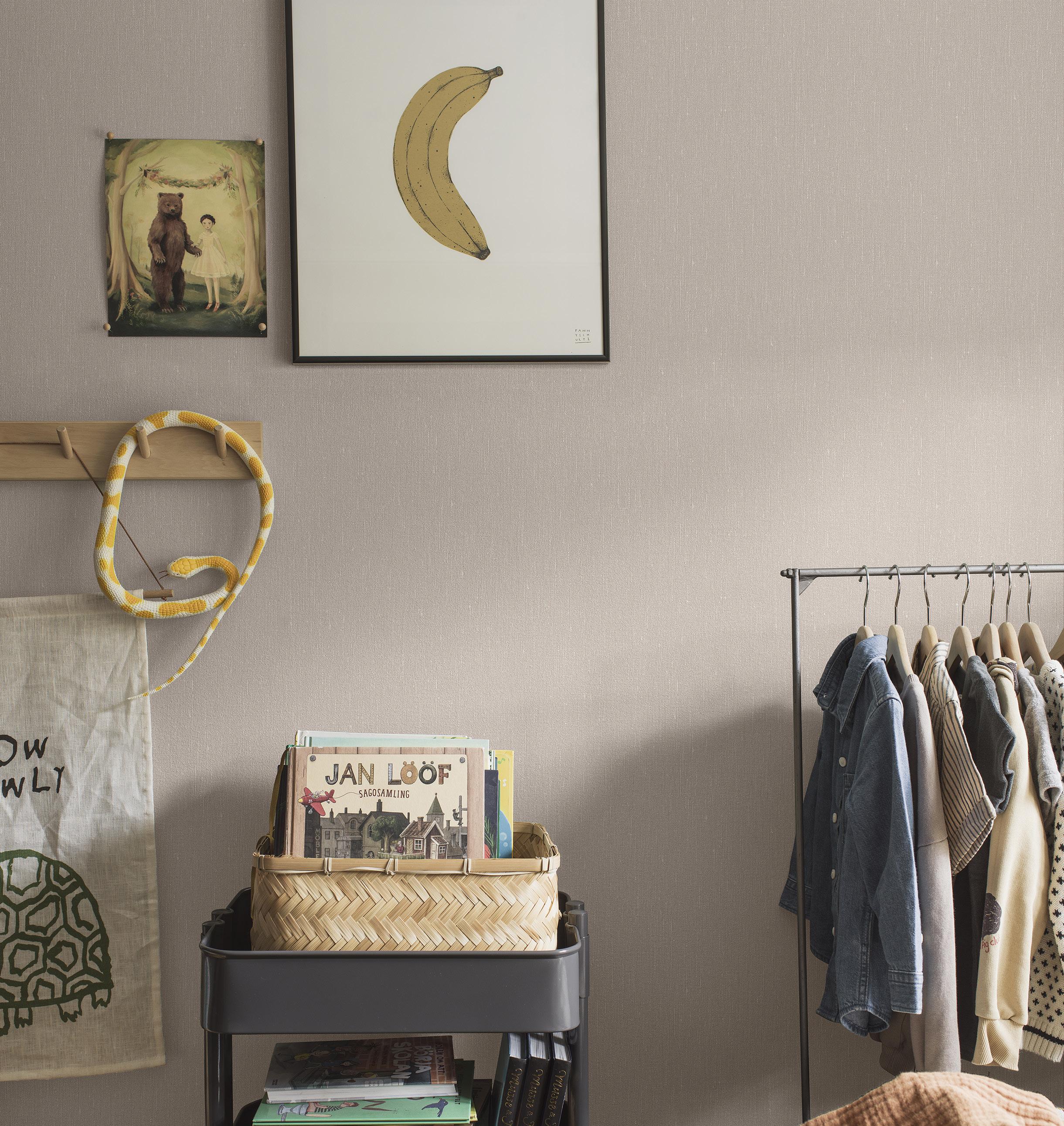 Mjuka Soft Blush gör sig fint i barnrummet. Från Boråstapeters kollektion Linen, 449 kr/rulle.