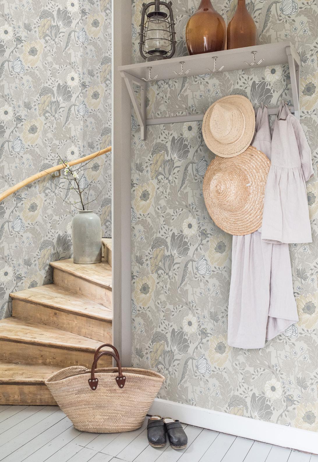 Inte riktigt sugen på att släppa det lugna? Testa den dovt ljusgrå nyansen Mandel, 499 kr/rulle, från Midbecs kollektion Kulör.