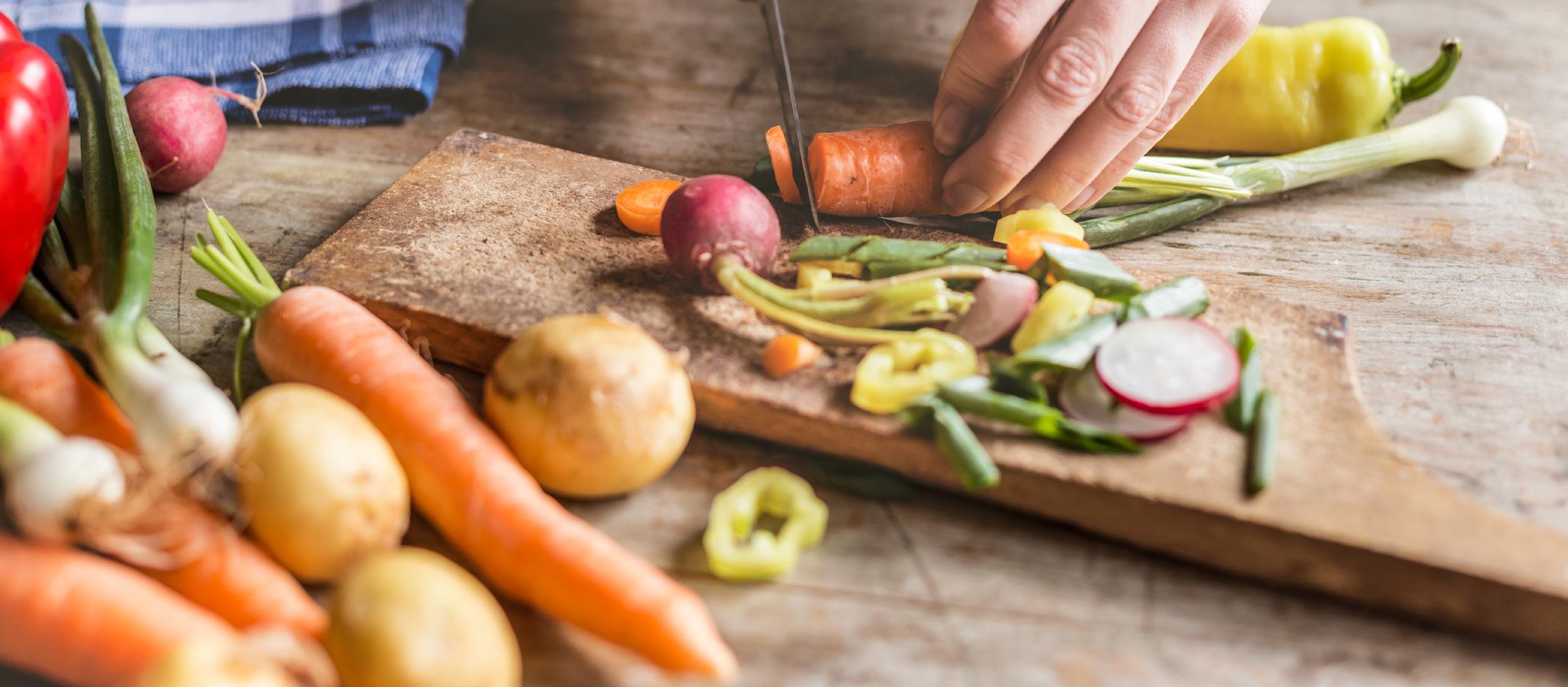 2. Skala och hacka lök, vitlök, morötter och potatis.