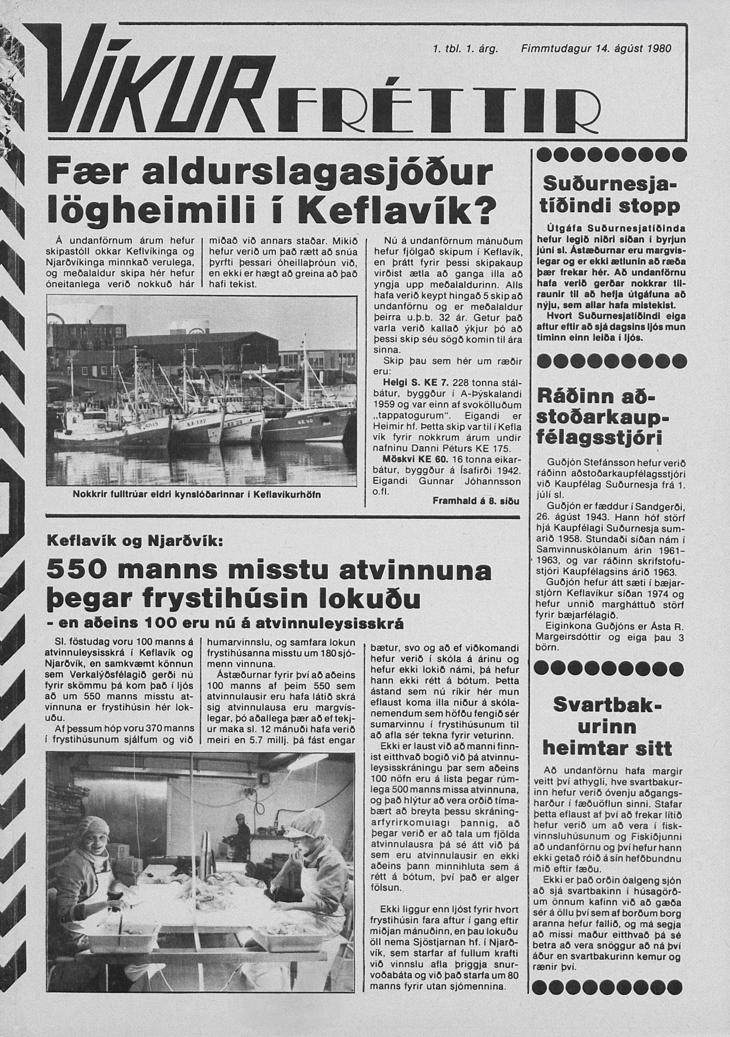 Forsíða fyrsta tölublaðs Víkurfrétta þann 14. ágúst 1980.