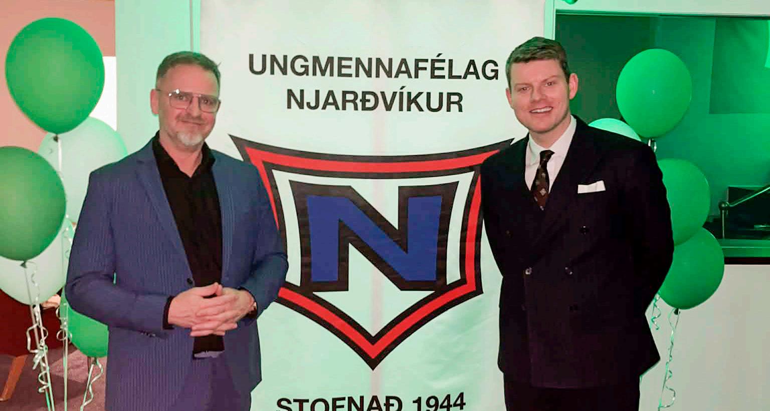 Gylfi Þór Gylfason stjórnarmaður og Stefán Einar veislustjóri.