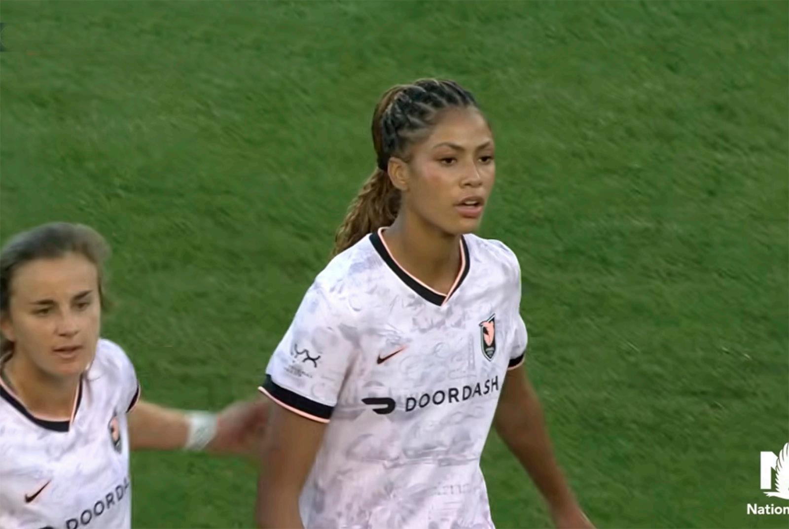 Keflvíkingurinn og landsliðs konaan Sveindís Jane Jónsdóttir átti stórleik með liði Angel City sem vann 3-1 útisigur á Bay FC í San Francisco í nótt. Sveindís skoraði tvö og átti stoðsendinguna sem gerði annað markið. Englarnir fara á topp NWSL-deildarinnar með sigrinum.