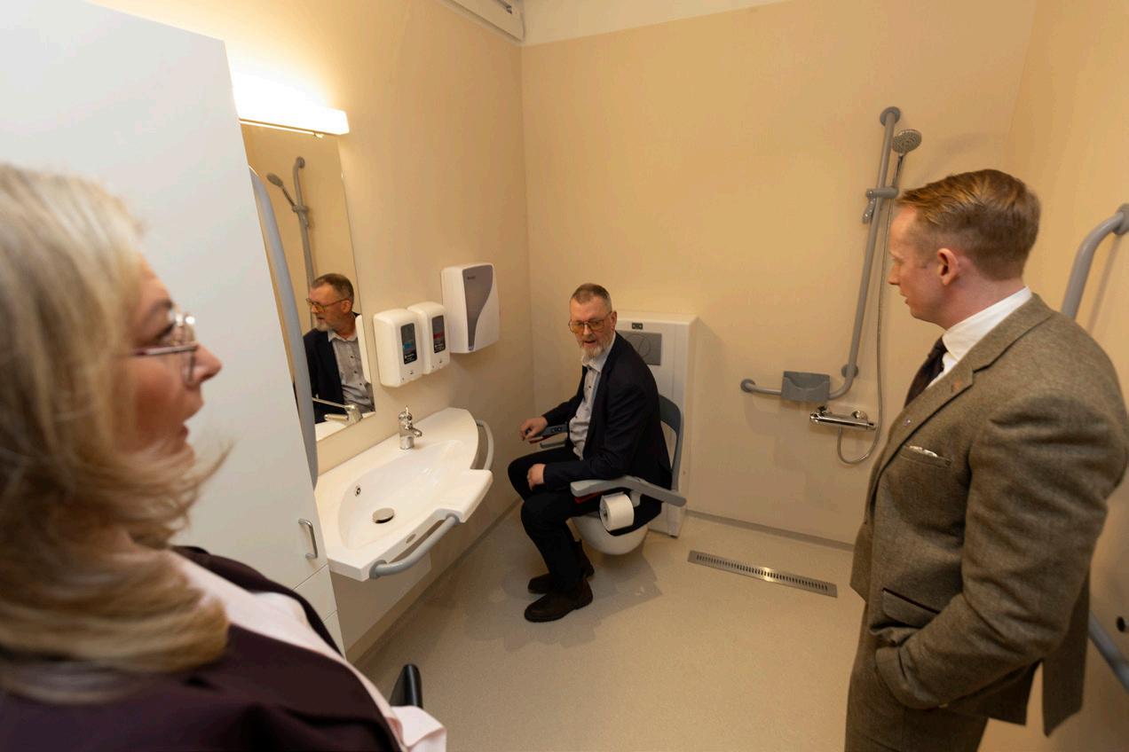 Sigurður verkefnisstjóri sýndi ráðherra nýjungar á salernum.