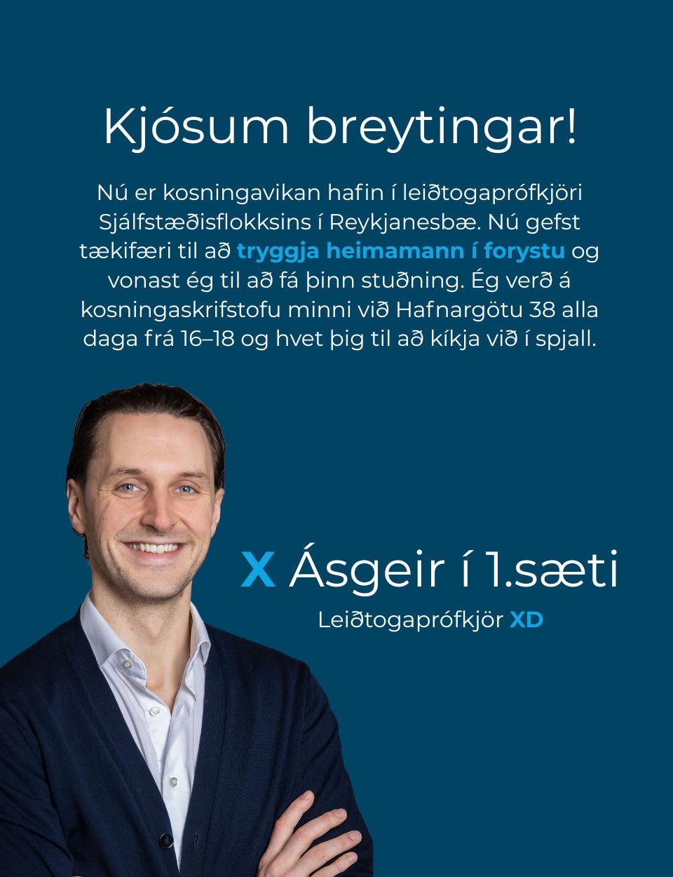 Framsókn hefur boðað til próf kjörs og þar hefur Halldóra Fríða Þorvaldsdóttir óskað eftir því að leiða listann áfram. Bjarni Páll Tryggvason sem var í 2. sæti hefur stigið upp úr stóli bæjarfulltrúa en hann hefur tekið við öðru starfi hjá Isavia og er kominn í framkvæmdastjórn félagsins eins og lesa má annars staðar í blaðinu. Bein leið mun ekki bjóða fram en oddviti hennar, Valgerður Björk Pálsdóttir, hætti í lok síðasta árs þegar hún fór til starfa í Brussel. Einn liðsmanna Beinnar leiðar, Birgir Bragason, greindi frá lokum framboðsins og hann ætlaði að bjóða krafta sína hjá Framsókn. Viðreisn kemur ný inn í og leitar nú að fólki á lista. Þar hefur Arnar Páll Guðmundsson lýst áhuga sínum á oddvitasætinu. Umbót undir forystu Margrétar Þórarinsdóttur hefur verið í minnihluta í bæjarstjórn síðustu tvö kjörtímabil. Hún hefur staðfest að framboðið muni bjóða fram lista sem hún mun að öllum líkindum leiða. Hún sagði í stuttu spjalli að hún hafi fengið mjög mikið af áskorunum um að halda áfram og að hún hafi staðið sig mjög vel í minnihluta í bæjarstjórn Reykjanesbæjar. Ekki er komið á hreint hvort Miðflokkurinn bjóði fram en áhugi mun vera innan hans á því, sömuleiðis hjá Flokki fólksins en hann er með tvo þingmenn í Suðurkjördæmi og annar maður þar á Sjálfstæðismenn hafa verið áberandi síðustu daga en fram bjóðendurnir þrír, Vilhjálmur Árnason, Ásgeir Elvar Garðarsson og Unnar Stefán Sigurðsson, berjast um oddvitasætið. Þá er einnig undirbúningur í gangi í hinum sveitarfélögunum og í blaðinu má m.a. sjá auglýsingu frá Sjálfstæðisflokknum í Suðurnesjabæ þar sem óskað er eftir áhugasömu fólki. Þar á bæ hafa menn lýst yfir megnri óánægju með margt í stjórn bæjarfélagsins en deilur um gerfigrasvöll og fleira hafa verið undanfarið.