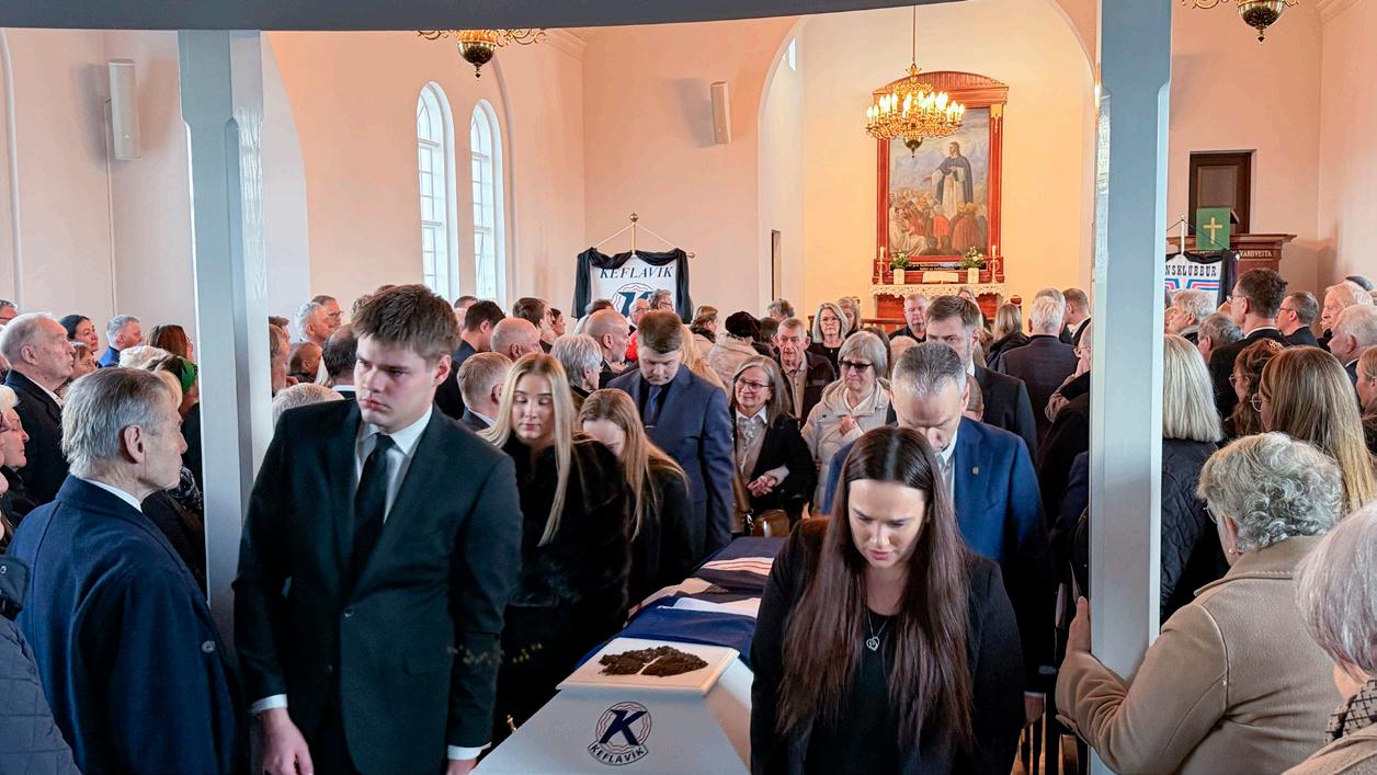 Hún á píanó og hann á blokkflautu. Börn, tengdabörn og barnabörn báru kistu Magnúsar út úr Keflavíkurkirkju í lok athafnar.