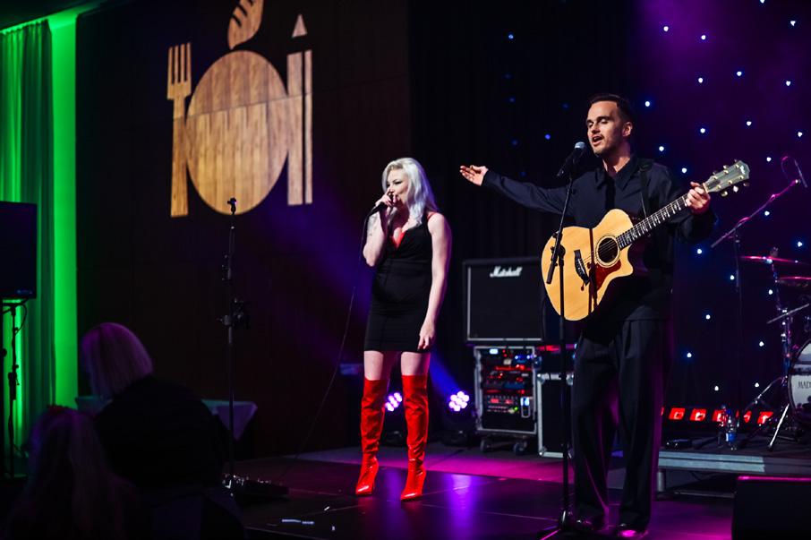 Boðið var upp á dýrindismat frá Réttinum og sáu Steiney Skúla dóttir og trúbadorinn Heiður um skemmtidagskrána. Steiney stýrði veislunni af stakri snilld og skapaði hlýlegt og létt andrúmsloft, en Heiður sló svo botninn í kvöldið með lifandi tónlist og fjöri.