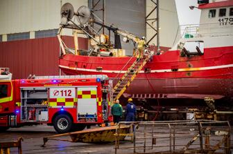 Ljósmyndir frá Víkurfréttum prýða glerveggi á slökkvistöðinni.