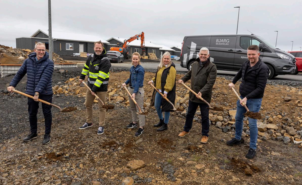 Skóflustunga að ellefu íbúða leiguhúsnæði sem Bjarg íbúðafélag mun reisa við Bárusker í Sandgerði var tekin í síðustu viku. Með skóflustungunni eru framkvæmdir hafnar, verktaki við uppbyggingu hússins er H.H. Smíði ehf. í Grindavík og eru áætluð verklok haustið 2024. Skóflustungan var í sex hlutum. Trausti Björgvinsson, formaður Starfsmannafélags Suðurnesja, Björn Traustason, framkvæmdastjóri Bjargs, Guðrún B Sigurðardóttir, sviðsstjóri fjölskyldusviðs