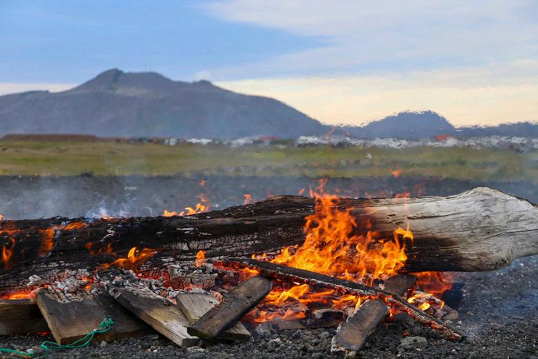 „Þessi hugmynd kviknaði um daginn þegar ljóst var að heimilissorp yrði ekki sótt í Grindavík. Í stað þess að keyra með það í ruslagámana ákváðum við að brenna því og timbri úti í Bót, sem er fjaran vestan megin við Grindavík,“ sagði Grindvíkingurinn Magnús Gunnarsson.