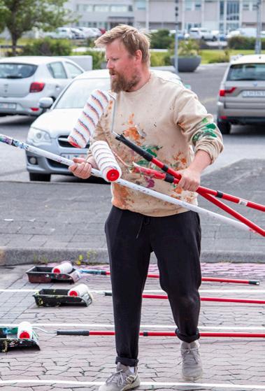 Fjölbreyttur hópur fulltrúa úr Reykjanesbæ, sem endurspeglaði fjölbreytileika mannlífsins, tók þátt í að mála gangbrautina. Kjartan
