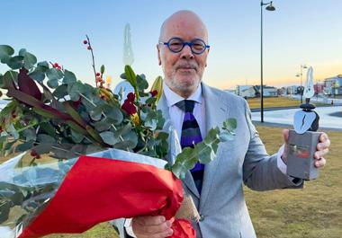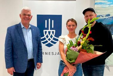 nika og Andrzej, og hittu Magnús Stefánsson, bæjarstjóra, sem færði þeim blómvönd af þessu tilefni og bauð fjölskylduna velkomna til búsetu í Suðurnesjabæ.
