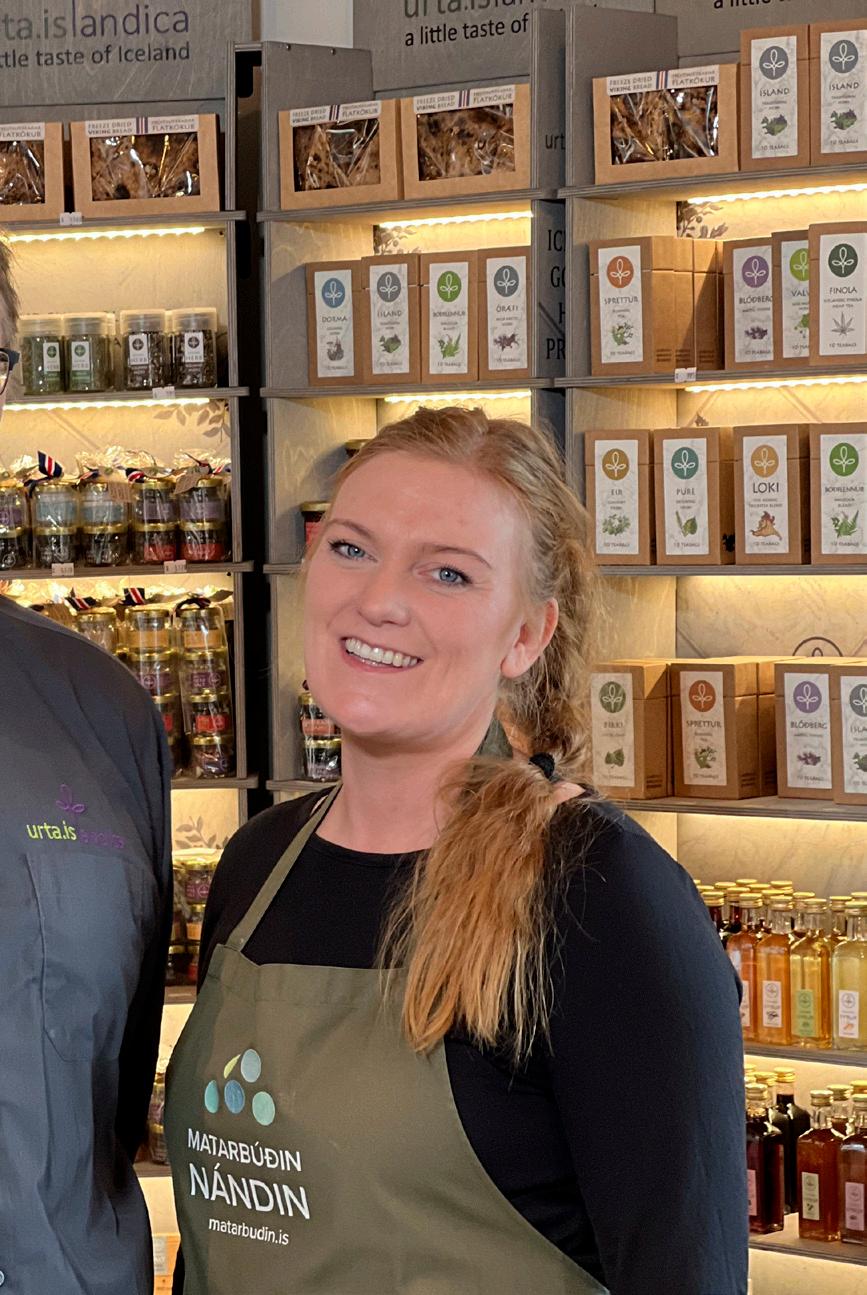 Forsaga Urta Islandica er sú að Þóra, mamma Láru, byrjaði að þróa vörur með hráefnum úr ís lenskri náttúru. „Hún byrjaði að þróa nokkrar vörur, þar á meðal aðalbláberjate. Hún prófaði að selja það í Kolaportinu og var að huga að því að fara í heilsugeirann. Það var ekki beint áhugi þar en ferða maðurinn hins vegar greip þessar vörur. Upp úr því urðu til jurta krydd, söltin okkar, síróp og sultur. Síðan þá hefur þetta bara stækkað og stækkað,“ segir Sigurður Magn ússon, framleiðslustjóri Urta Islan dica og eiginmaður Þóru. „Það kemur eiginlega á óvart,“ segir Sigurður aðspurður hvernig