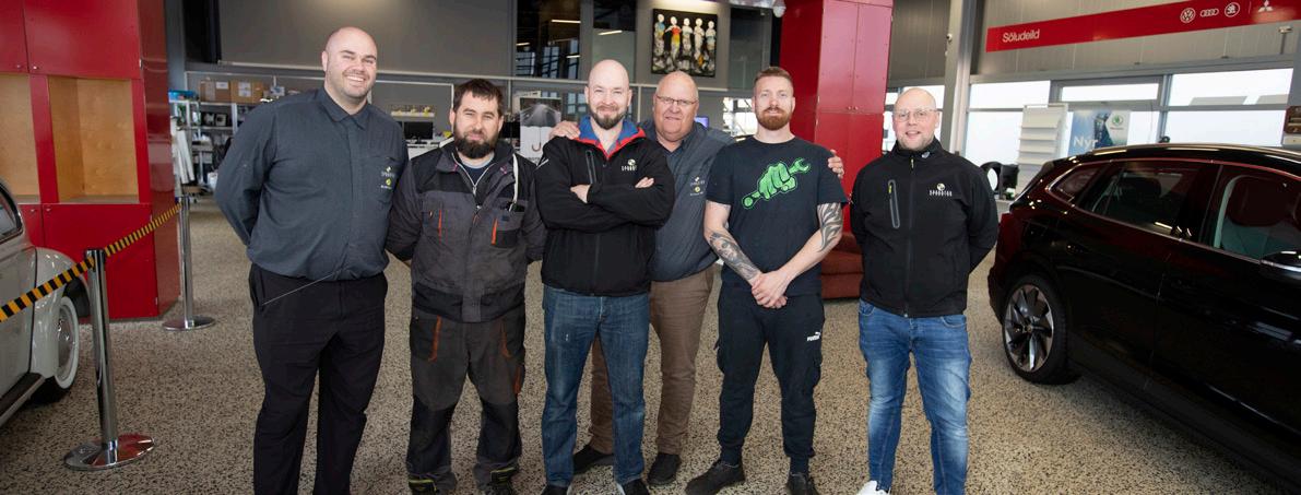 tók við lyklunum af þeim Birni og Þórði í samnefndu dekkjaverkstæði í Keflavík. „Það var gaman að kaupa þetta af þeim félögum sem höfðu verið í fjörutíu ár í bransanum. Við erum að skoða möguleika þessa dagana í því að færa dekkjaverk stæðið út á Fitjar og byggja við húsnæðið okkar. Skemmtilegar hugmyndir og vonandi verða að veruleika. Þangað til verðum við þó áfram með öflugt dekkjaverkstæði á gamla staðnum,“ segir Sverrir sem skipti við blaðamanninn og settist undir stýri á Audi GT rafmagns bílnum. „Þetta er alvöru græja. Við skulum kíkja aðeins út á veg og sjá hvað hann getur.“