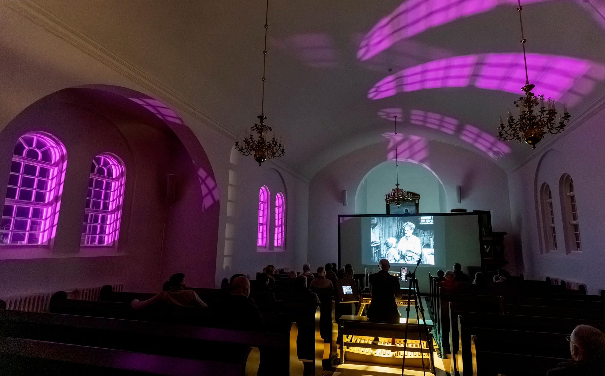 Það er kannski táknrænt að á sama tíma og síðasta bíóhúsið í Reykjanesbæ lokaði dyrum sínum var sett upp kvikmyndatjald í kirkjunni og tónlistarflutningur í anda kvikmyndahúsanna í upphafi síðustu aldar þegar myndirnar voru þöglar og leikið undir þeim á hljóðfæri til að túlka stemmninguna í myndinni hverju sinni.