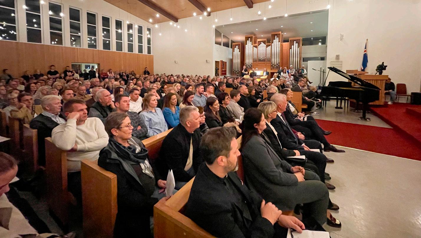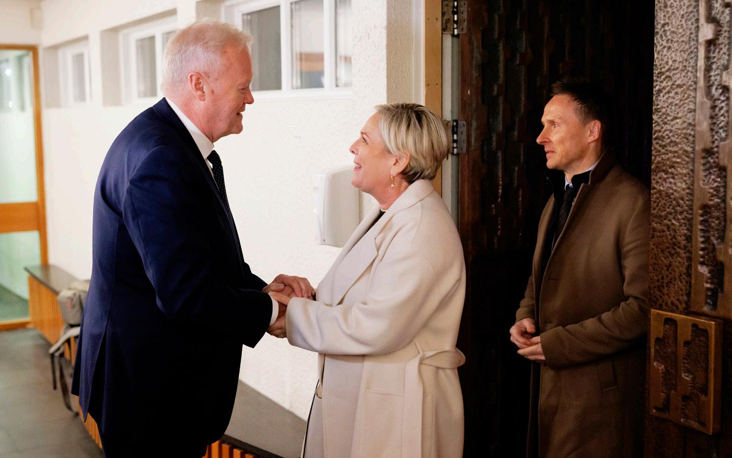 Forsetahjónin Halla Tómasdóttir og Björn Skúlason heimsóttu Grindavík á sunnudagskvöld og tóku þátt í samverustund í Grindavíkurkirkju. Tilefnið var að ár var liðið frá miklum náttúruhamförum í Grindavík þar sem rýma þurfti bæinn. Nánar er greint frá samveru