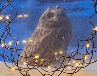 Ugla leitaði skjóls við eldhúsglugga