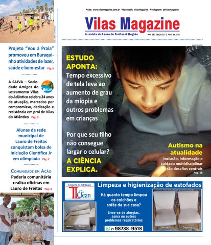 Seja bem vindo(a)! Revista mensal de serviços e facilidades, distribuída gratuitamente em todos os domicílios de Vilas do Atlântico e condomínios residenciais de Lauro de Freitas, Estrada do Coco e região (Busca Vida, Abrantes, Jauá, Jacuípe, Guarajuba, Stella Maris, Praia do Flamengo e parte de Itapuã). Disponível também em pontos de distribuição criteriosamente selecionados na região. Tiragem: 20 mil exemplares Audiência estimada: 150 mil leitores As opiniões expressas nos artigos publicados são de responsabilidade de seus autores e não refletem, necessariamente, as da Editora. É proibida a reprodução total ou parcial de matérias, gráficos e fotos publicadas nesta edição, por qualquer meio, sem autorização expressa, por escrito da Editora, de acordo com o que dispõe a Lei Nº 9.610, de 19/2/1998, sobre Direitos Autorais. Vilas Magazine e Vilas Magazine Online são veículos de comunicação de propriedade da EDITAR - Editora Accioli Ramos Ltda.