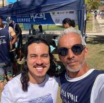 AMBIEntAlIStAS EM AÇÃo rodrigo Chetto (esq.), fundador do Projeto Essa Praia Também é Minha, e o professor Henrique Moitinho, do Projeto Ilhas, juntos na 40ª edição do Projeto Essa Praia Também é Minha. A ação ocorreu na Praia de Vilas do Atlântico, com a participação da sociedade civil, com conscientização de frequentadores da orla e coleta de resíduos descartados de forma incorreta.