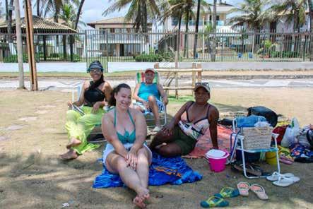 Aproveitando a praia de Vilas do Atlântico, a psicóloga Tamara Lima (dir.), de 50 anos, elogiou o trabalho dos salva-vidas. “Somos privilegiados, porque em cada ponto aqui, inclusive nos mais perigosos, há sinalização com bandeiras, e a equipe está sempre atenta. Quando ocorre qualquer inter-