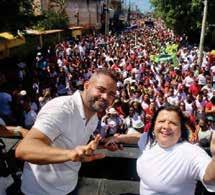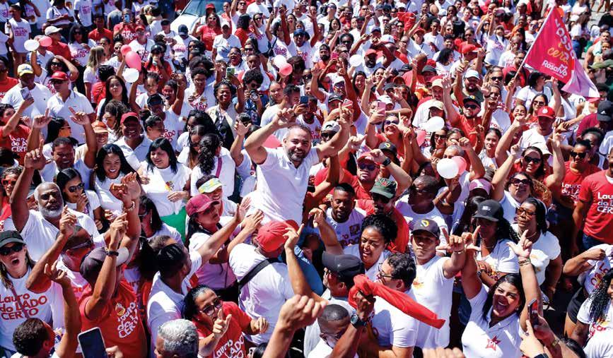 EMANCIPA çã O MOSTROU A FOR ç A DE R OSALVO No sábado, 27 de julho, o Centro de Lauro de Freitas foi tomado pelas lideranças e populares que vestiram o vermelho e branco para demonstrar a força da chapa encabeçada por Rosalvo (PT) e sua vice, Naide Brito (Republicanos). Público estimado em mais de 20 mil pessoas participou da comemoração, que também contou com a presença de cerca de 280 candidatos a vereador. “Caminhando junto com o povo mostra o sucesso do evento, uma prova de que a população confia nesta nova chapa, que segue os passos de Lula, Wagner, Rui e Jerônimo. Alinhados, conseguiremos avançar ainda mais”, afirmou Rosalvo, muito cumprimentado por pessoas presentes no evento.