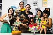tDUPLA COMEMORAÇÃO Na celebração pelos seus 41 anos, o engenheiro Alex Oliveira (camisa preta) se comportou como um orgulhoso coadjuvante, durante o encontro promovido pela esposa Rêise Gordiano. Todas as atenções estavam direcionadas para a filha, Biah (no colo da mãe, ao lado da amiga Adriele), que, na mesma data, completava seis meses encantando a família e os padrinhos, Ane e Paulo Maneira (à esq. na foto)